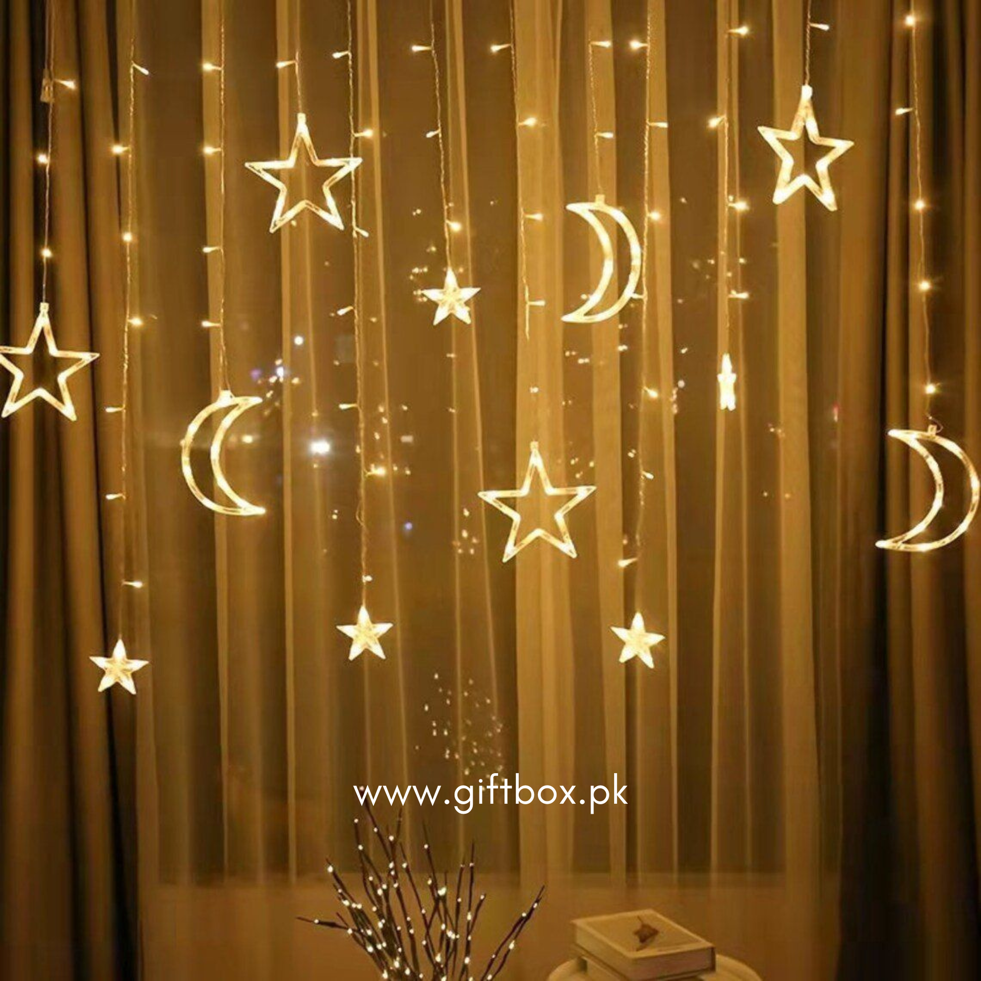Magical LED Curtain Lights - 138 Twinkling stars & moons create enchanting ambiance (11.5ft x 3.4ft). 12 strings with 0.5ft spacing, powered by 4.9ft USB cable. Perfect for bedroom decorations, Window lights, and holiday décor like Christmas or Ramadan.